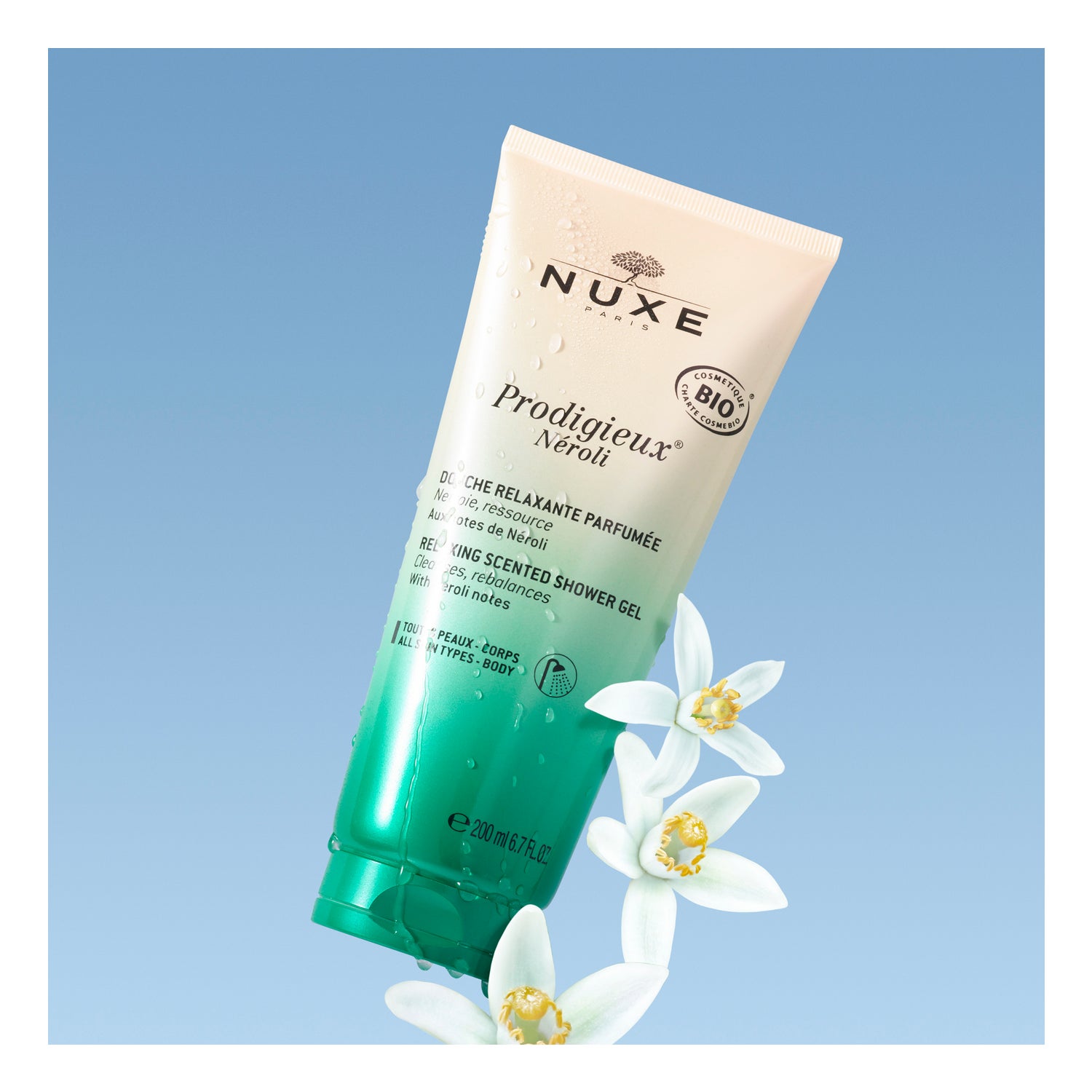 Nuxe Prodigieux Néroli Relaxing Shower Gel 200ml é um gel de duche perfumado. A sua fórmula é muito suave graças à origem natural de 96% dos seus ingredientes que são também biodegradáveis.