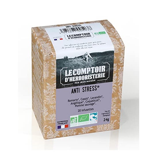O contador de ervas Infusão Antiestresse 20uds da LE COMPTOIR D'HERBORISTERIE é uma opção perfeita para quem deseja encontrar um momento de tranquilidade em sua rotina diária. Esta infusão ecológica foi projetada para favorecer a relaxação e o bem-estar emocional.
