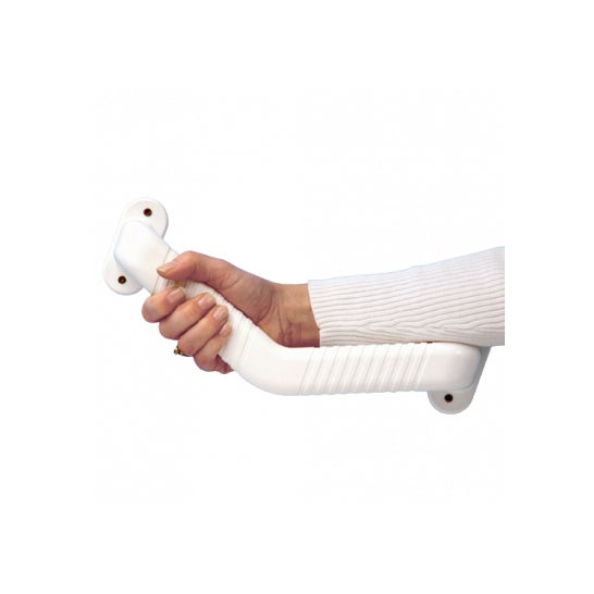 Este asidero se destaca pela fácil instalação e pela versatilidade de colocação tanto na vertical quanto na horizontal, adaptando-se a diversas necessidades de apoio. Permite que o usuário transfira o peso da mão até o antebraço, promovendo um ambiente mais seguro e confortável, o que contribui para manter a autonomia pessoal em casa.
