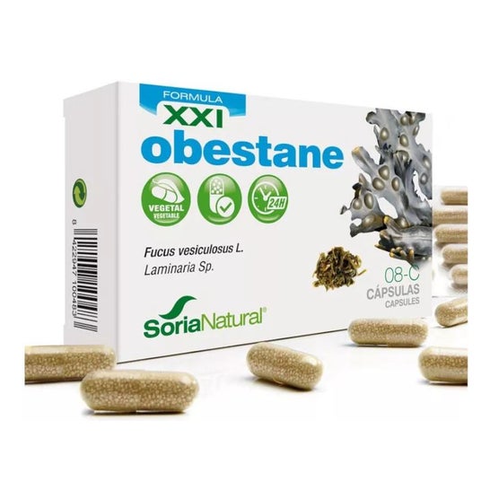 08-C Obestane XXI é um produto à base de algas Laminaria e Fucus Vesiculosus com elevada eficácia redutora da gordura acumulada e anti-celulítica. A gordura que se acumula no tecido adiposo encontra-se sob a forma de triglicéridos, ou seja, em formato de "armazenamento", pelo que a gordura embalada acumula-se no organismo como embalagens nas prateleiras de um armazém, à espera de ser utilizada nos centros mitocondriais de produção de energia.