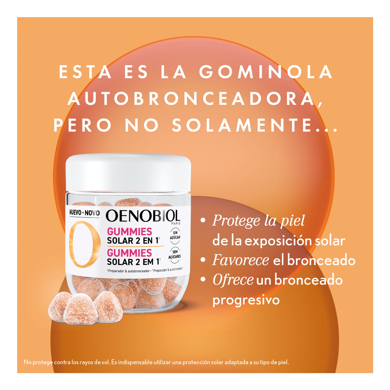 Oenobiol Gummies Solaire 2em1 60 Gummies é um complemento alimentar em formato de gominolas que contribui para preparar a pele para a exposição solar.