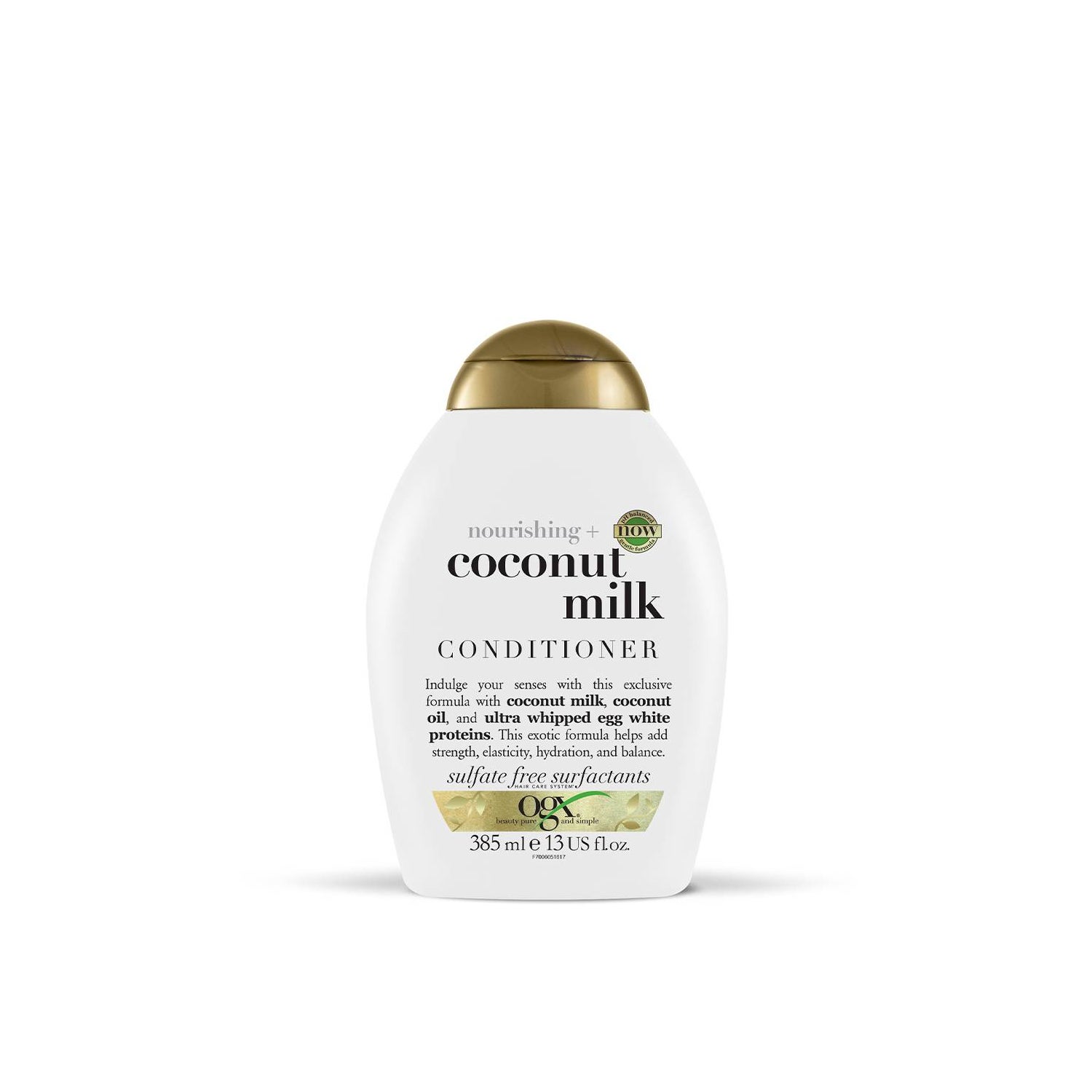 Ogx Nourishing Conditioner Coconut Milk 385ml é um champô nutritivo e condicionador que contém óleo de coco, leite de coco e proteínas de clara de ovo para dar ao seu cabelo um aspeto radiante e saudável.