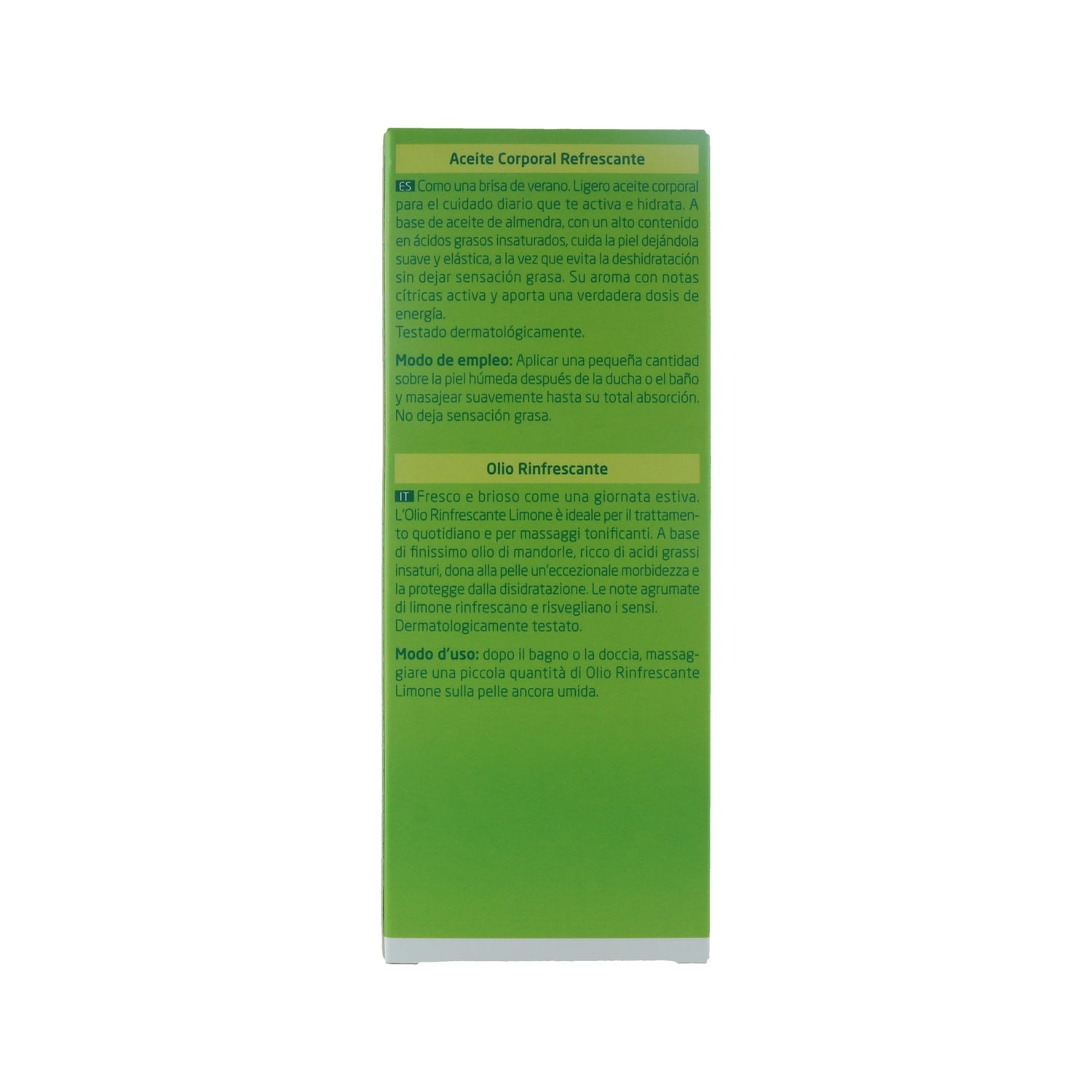 Os seus componentes à base de óleo de amêndoas doces, rico em ácidos gordos insaturados, oferecem um tratamento nutritivo especialmente para a pele seca, porque proporciona suavidade e hidratação e mantém a elasticidade da pele. Tem também um agradável aroma a limão.