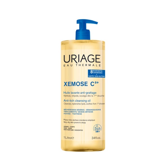 Uriage Óleo Limpeza Xemose 1L é um óleo de limpeza que favorece a suavidade das peles secas e atópicas.