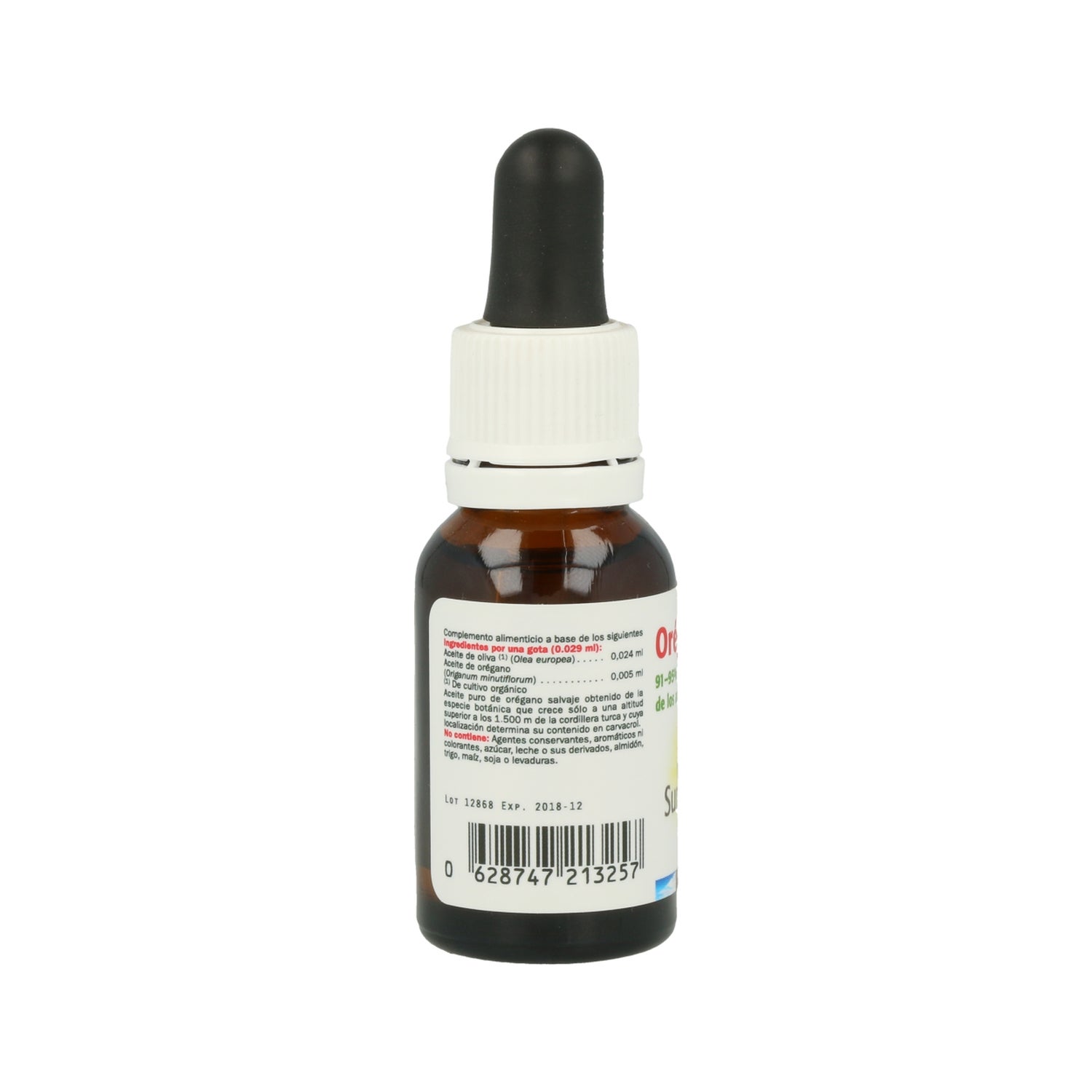 Sura Vitasan Oregano Oil 15ml é um suplemento alimentar feito de óleo de orégãos que beneficia o sistema imunitário. É útil contra vírus e bactérias, constipações e até problemas gastrointestinais. Recomenda-se tomar 3 gotas com líquido, manter debaixo da língua durante alguns minutos ou gargarejar e depois engolir.