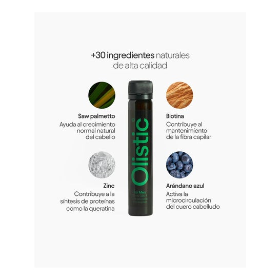 Olistic For Men 2x28uds é um tratamento bebível natural para fortalecer o cabelo, melhorar a espessura e a saúde capilar, fomentar o crescimento e diminuir a queda.