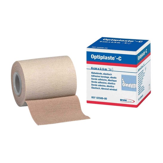 Optiplaste C Venda Elástica Adhesiva 6cmx2,5m 1ud é uma venda elástica feita 100% de algodão.