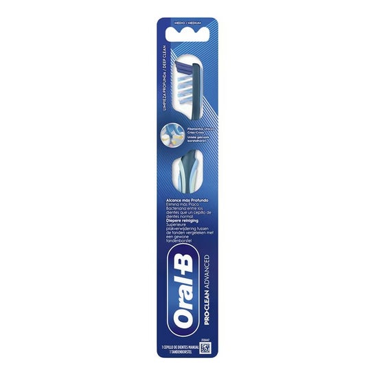 A escova média Oral-B Pro Expert Pro Expert Pro Flex oferece uma limpeza superior graças à sua tecnologia Pro Expert Premium, que apresenta um perfil de cerdas onduladas e uma pega ergonomicamente concebida. Tem um descanso para o polegar para maior controlo.