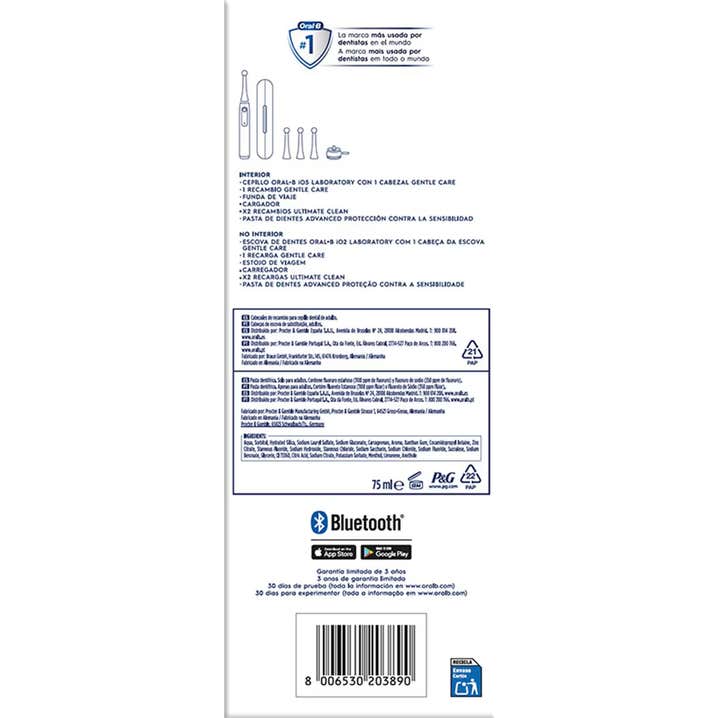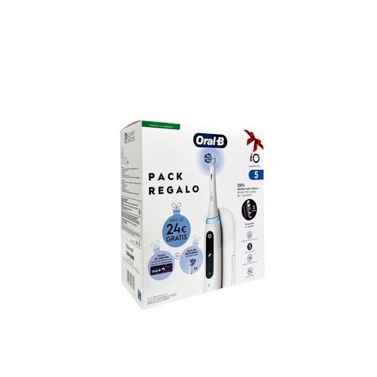 Oral-B Pack Io5 Laboratory 2 Escovas + Refil + Pasta para higiene bucal diária inclui duas escovas elétricas iO5 com tecnologia magnética iO, refis Ultimate Clean e pasta dental. É uma solução completa para a higiene bucal diária em adultos.