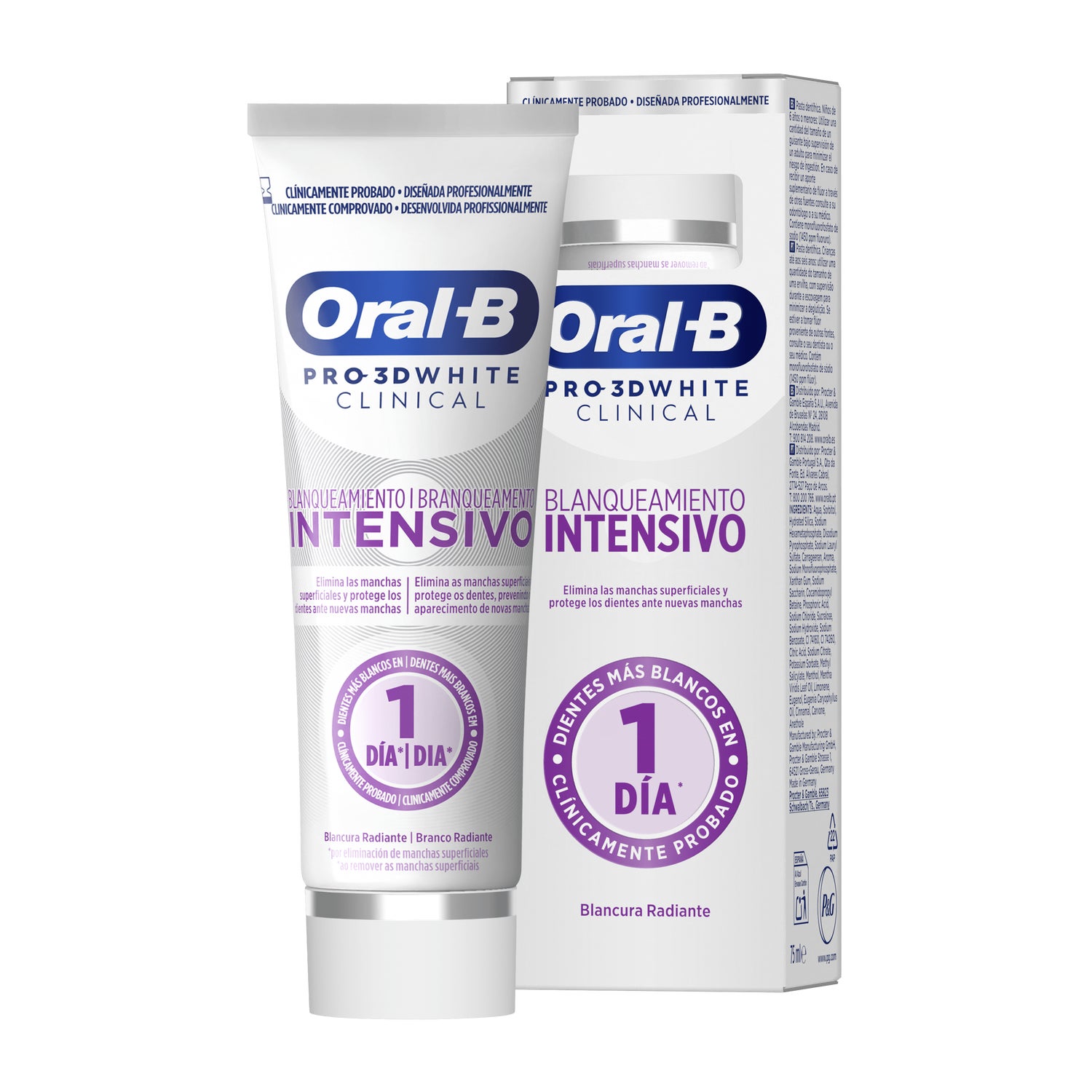 Oral-B Pasta 3DW Clinical 75 ml clareamento intensivo é uma pasta de dente para adultos, pensada para conseguir dentes visivelmente mais brancos desde o primeiro dia. Ajuda a eliminar manchas superficiais graças à sua tecnologia iônica, com uma ação suave que não requer esfregar de forma agressiva.