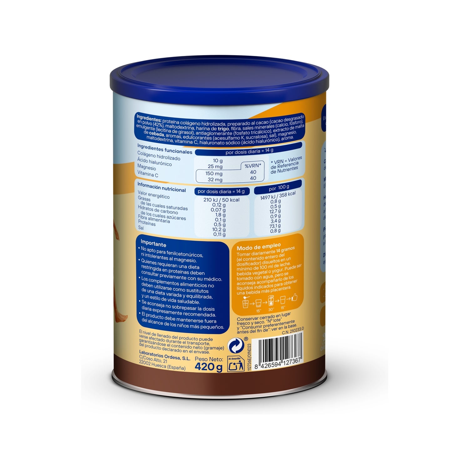 Colnatur® Complex Sabor Chocolate 420g é um complemento alimentar em pó com sabor a chocolate à base de colágeno natural altamente assimilável.