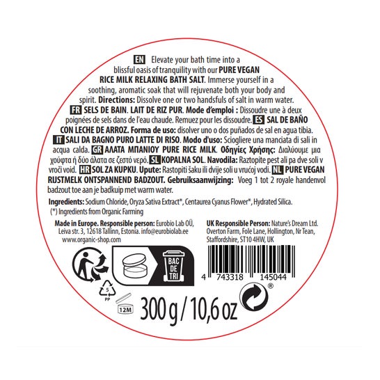 Organic Shop Sais de Banho Relaxante Leite de Arroz Vegan 300g
