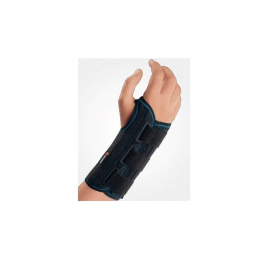 A tala de pulso da Orliman é concebida para uma estabilização perfeita do pulso em caso de tendinite ou de rhizartróse. Utiliza-se para manter bem após uma entorse ou um traumatismo. INFORMAÇÃO Esta tala está equipada com talas palmar, dorsal e lateral em alumínio, para um suporte confortável e evitar rotações inadequadas do polegar. Graças às correias e às fivelas anti-rodagem, o ajuste permite uma compressão perfeita e uma posição de descanso ideal para aliviar as dores articulares. Tala palmar removível em alumínio moldável. Proteção da comissura do polegar. Estrutura dorsal em tamanho universal. INDICAÇÃO Trauma e entorse do pulso e do polegar, lesão do escafóide, tendinite de De Quervain, rhizartróse em fase aguda.