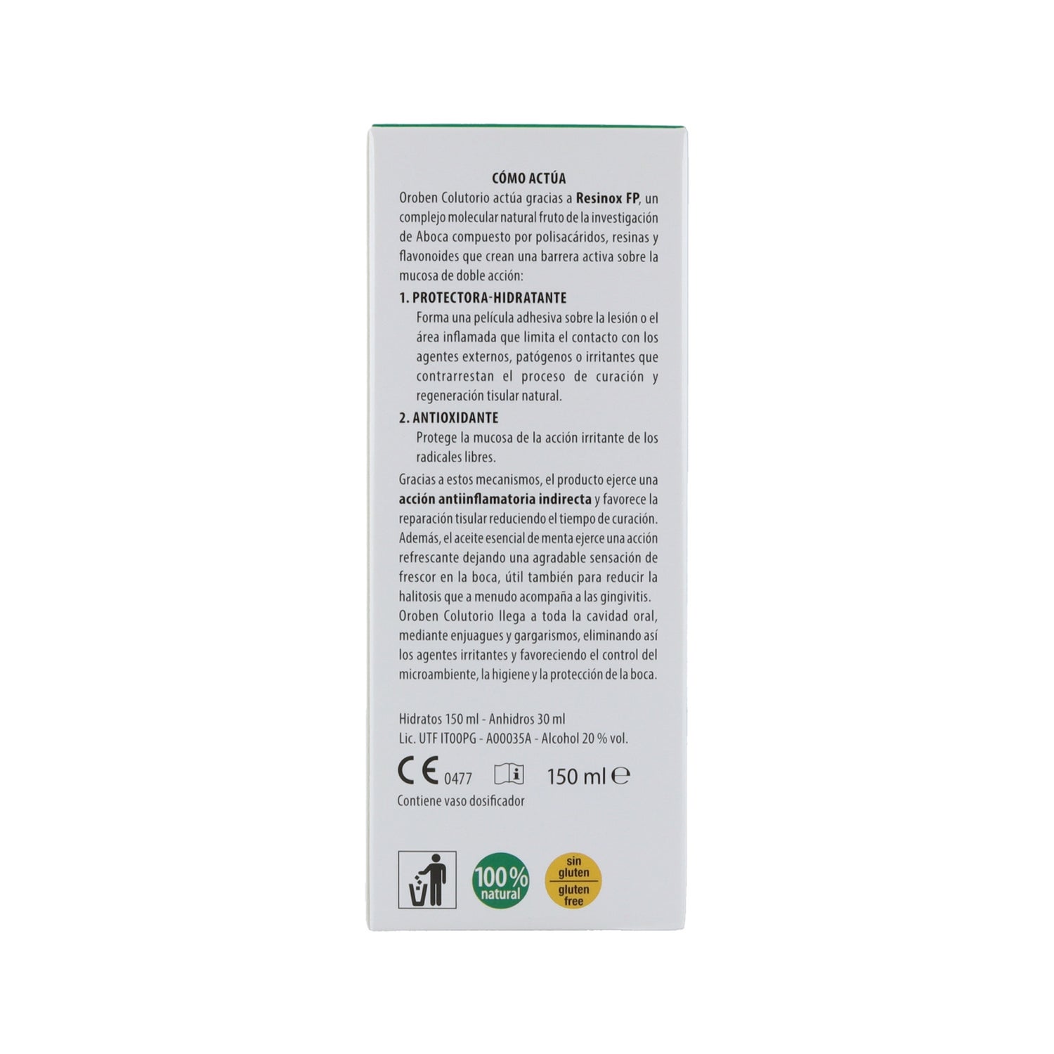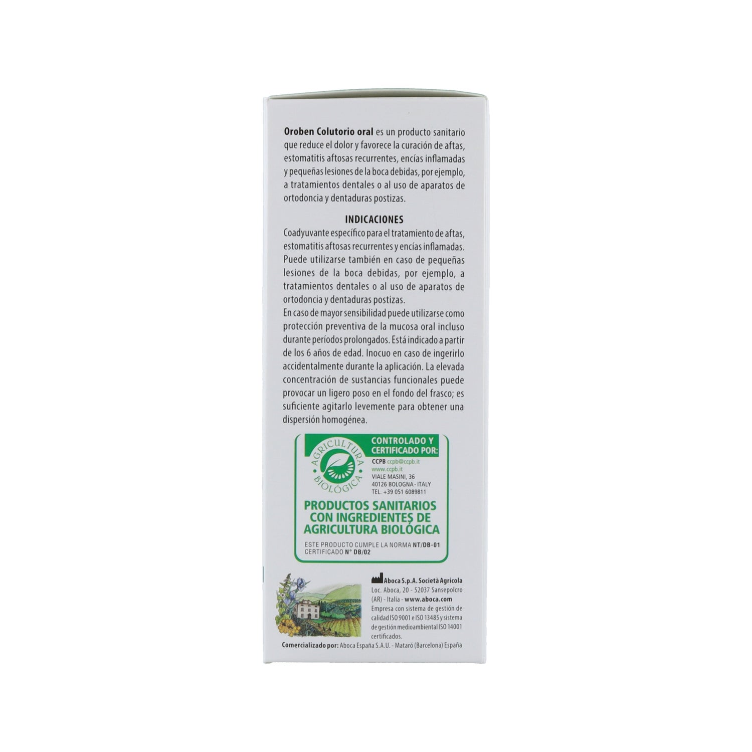 Aboca Oroben Colutório 150ml é um colutório que ajuda a reduzir a dor e a promover a cura de úlceras de estomatite aftosa recorrente, gengivas inflamadas e pequenas lesões na boca