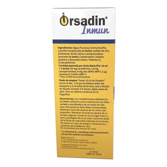 Um suplemento alimentar feito de ingredientes naturais, lactoferrina, lactoperoxidase, zinco e vitamina D3 que ajuda a fortalecer o sistema imunitário. Sua fórmula cuidadosa ajuda a reforçar as defesas no inverno e no outono para os pequenos, prevenindo a constipação e a gripe.