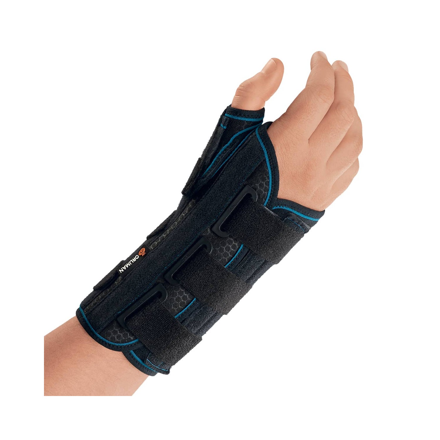 Tala para pulso de 27cm que tem uma tala palmar removível e moldável e 2 talas dorsais flexíveis. Leve e confortável, é colocado e ajustado com uma só mão graças ao seu sistema de ajuste de 4 pontos com fivelas antitorsão. Indicado para traumatismo de pulso, entorse, contusão e imobilização pós-operatória. Tamanho 3 (circunferência do pulso 18 - 20cm).