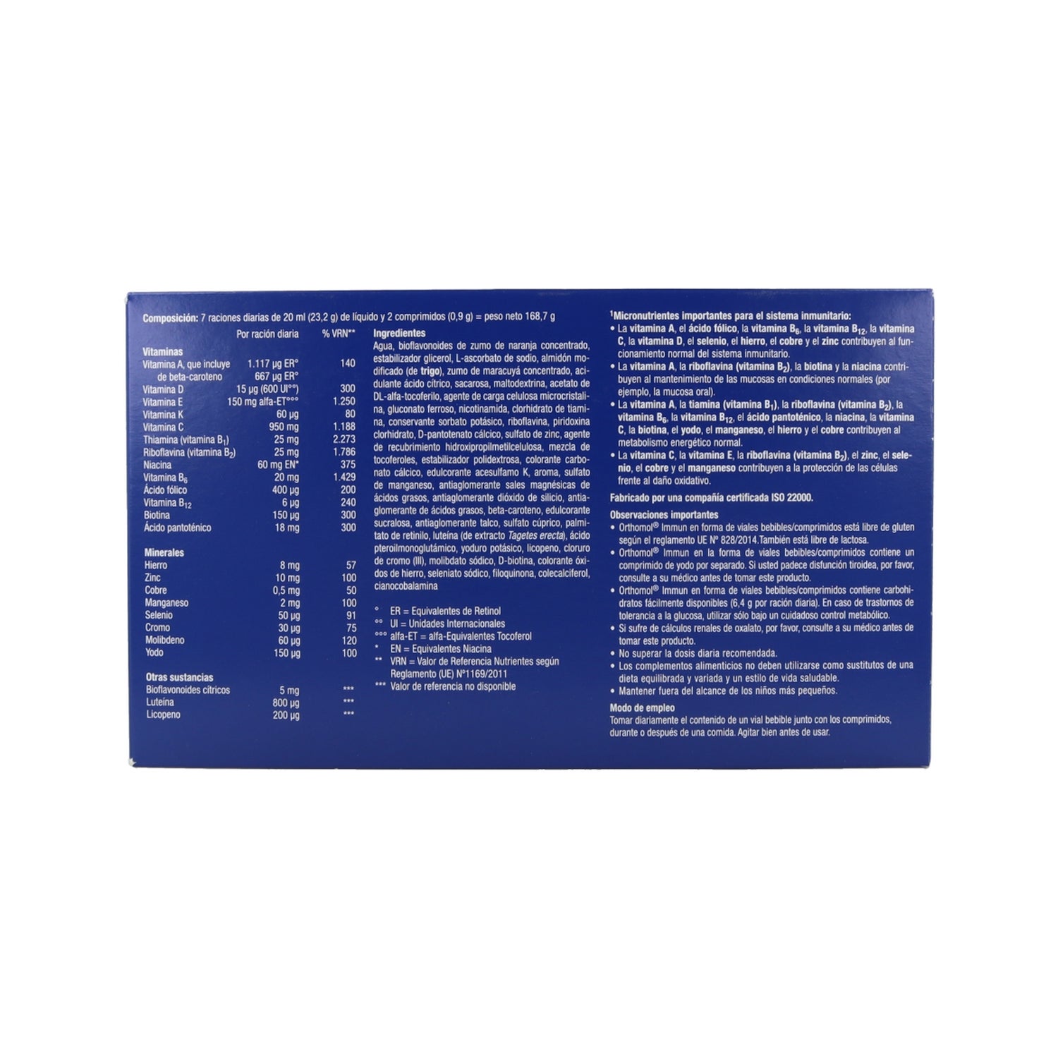 ÁGUA, SUCO DE LARANJA CONCENTRADO COM BIOFLAVONÓIDES, GLICEROL (ESTABILIZADOR), L-ASCORBATO DE SÓDIO, AMIDO MODIFICADO (PARCIALMENTE DE TRIGO), SUCO DE MARACUJÁ CONCENTRADO, SACAROSE, ÁCIDO L-LÁCTICO (ACIDIFICANTE), MALTODEXTRINA, ACETATO DE DL-ALFA TOCOFERILO, CELULOSE MICROCRISTALINA (ESPESSANTE)SACAROSE, SACAROSE, ÁCIDO L-LÁCTICO (ACIDIFICANTE), MALTODEXTRINA, ACETATO DE DL-ALFA-TOCOFERILO, CELULOSE MICROCRISTALINA (ESPESSANTE), GOMA ARÁBICA (ESTABILIZANTE), GLICOSE, GLICEROL (ESTABILIZANTE), GLICEROL (ESTABILIZANTE), GLICEROL (ESTABILIZANTE)BIGA (ESTABILIZANTE), GLUCONATO FERROSO, NICOTINAMIDA, ÓLEOS VEGETAIS (COCO E GIRASSOL EM PROPORÇÕES VARIÁVEIS), CLORIDRATO DE TIAMINA, SORBATO DE POTÁSSIO (CONSERVANTE), RIBOFURANO (CONSERVANTE).(CONSERVANTE), RIBOFLAVINA, CLORIDRATO DE PIRIDOXINA, D-PANTOTENATO DE CÁLCIO, CLORETO DE ZINCO, TOCOFERÓIS MISTOS, HIDROXIPROPILMETILCELULOSE (AGENTE DE REVESTIMENTO), SAIS DE MAGNÉSIO DE ÁCIDOS GORDOS DIETÉTICOS (AGENTE DE REVESTIMENTO), SAIS DE MAGNÉSIO DE ÁCIDOS GORDOS DIETÉTICOS (AGENTE DE REVESTIMENTO).ÁCIDOS GORDOS (AGENTE ANTIAGLOMERANTE), ACESSULFAME K (EDULCORANTE), CICLAMATO DE SÓDIO (EDULCORANTE), AMIDO DE MILHO, SULFATO DE MANGANÊS, SULFATO DE MANGANÊS, CLORETO DE SÓDIO (EDULCORANTE).SULFATO DE MANGANÊS, SACARINA SÓDICA (ADOÇANTE), AROMATIZANTE, DIÓXIDO DE SILÍCIO (AGENTE ANTIAGLOMERANTE), BETA-CAROTENO, POLIDEXTROSE (ESTABILIZANTE), DIÓXIDO DE TITÂNIO (CORANTE), HIDRÓXIDO DE SÓDIO (CORANTE), HIDRÓXIDO DE SÓDIO (ADOÇANTE).(ESTABILIZADOR), DIÓXIDO DE TITÂNIO (CORANTE), TALCO (ANTIAGLOMERANTE), SULFATO CÚPRICO, ÁCIDO PTEROILMONOGLUTÂMICO, PALMITATO DE RETINILO, AGENTE LUTEINIZANTE, SUCRALOSE (ADOÇANTE), SUCRALOSE (EDULCORANTE).NA, SUCRALOSE (ADOÇANTE), LICOPENO, IODETO DE POTÁSSIO, D-BIOTINA, CRÓMIO (III) CLORETO, MOLIBDATO DE SÓDIO, SELENATO DE SÓDIO, FILOQUINONA, CIANOCOBALAMINA, VITAMINA D3 (COLECALCIFEROL).