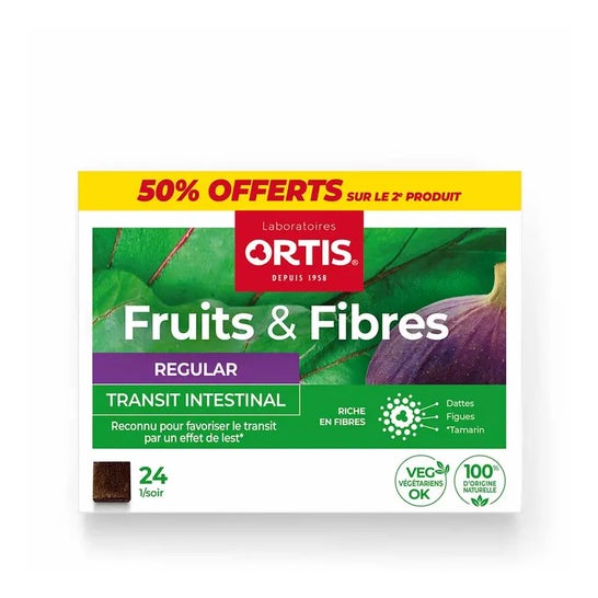 Ortis Fruit & Fibre Regular Intestinal Transit 2x24 Cubos é um suplemento alimentar rico em fibras que ajuda a restabelecer o trânsito intestinal.O ruibarbo, o tamarindo, os figos e as tâmaras ajudam a regular o trânsito intestinal e a promover uma boa saúde intestinal graças a um efeito de lastro.Indicado a partir dos 12 anos de idade.Vegetariano.Não recomendado a grávidas e lactantes.Sem conservantes.Embalagem de 2.Embalagem de 2.Os suplementos alimentares nunca devem ser utilizados como substitutos dos suplementos alimentares.Adequado a partir dos 12 anos.Vegetariano.Não recomendado a grávidas e lactantes.Sem conservantes.Embalagem de 2. Formato duo.Os suplementos alimentares nunca devem substituir uma alimentação saudável, diversificada e equilibrada e um estilo de vida saudável.