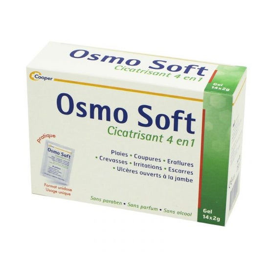 Osmo Soft Cicatrizante 4 em 1 14x2g é um gel que promove a cicatrização de feridas, cortes, arranhões e úlceras de pressão e abertas.