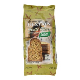 Pão de forma tostado, elaborado com azeite de oliva extra virgem 100% orgânico. Recomendado para substituir perfeitamente o pão comum. É baixo em açúcares e facilita o processo digestivo. Contém dextrinato, apto para pessoas com problemas de digestão. Tem um grande aporte de ômega 3 que ajuda a controlar o colesterol no sangue, os sintomas da artrite e depressão. Favorece o funcionamento normal cerebral. O azeite de oliva tem propriedades anti-inflamatórias e é aliado para manter a pele jovem.