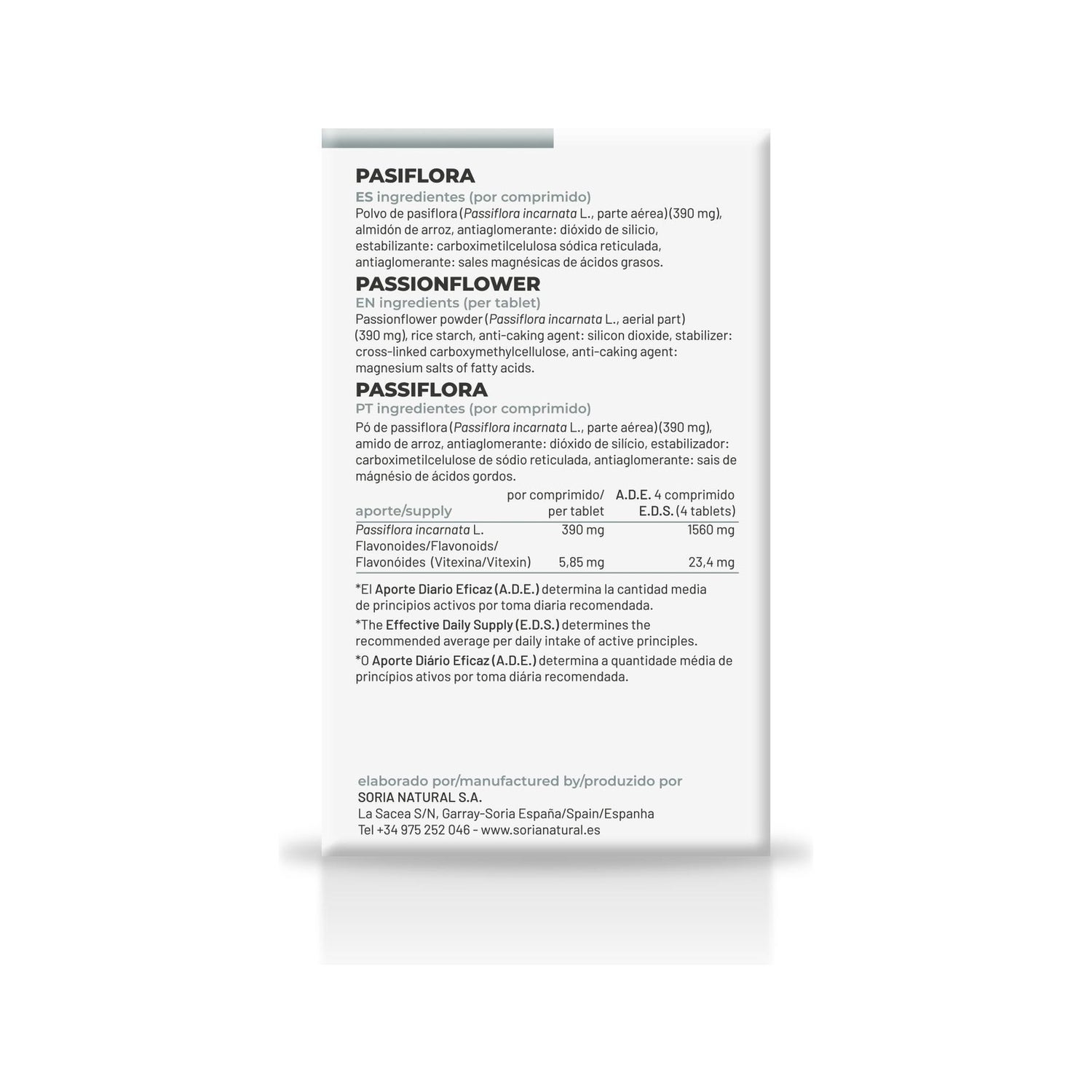 Soria Natural Pasiflora 60comp é um suplemento alimentar que ajuda a aliviar casos de insónia, stress, má digestão ou casos de nervosismo intenso