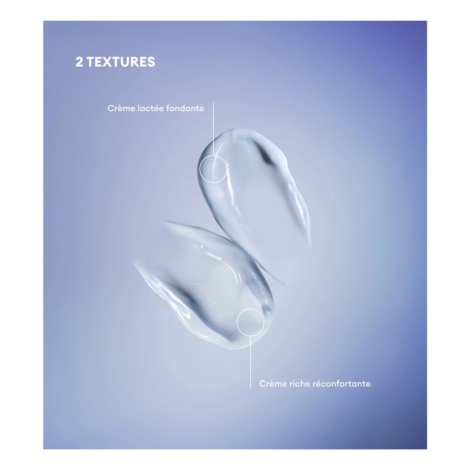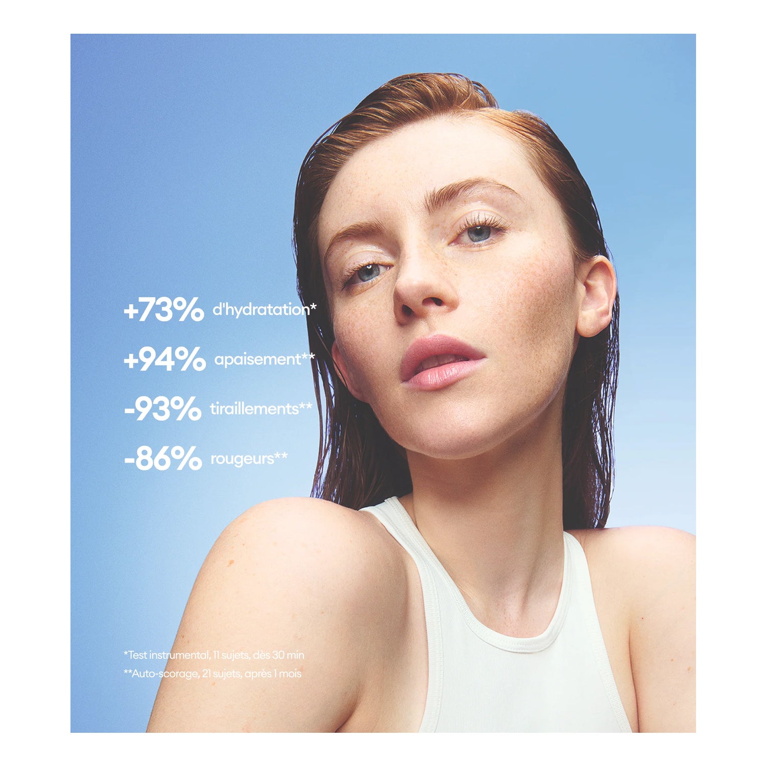 Graças aos ingredientes da água do Glaciar Mont Blanc e da manteiga de manga orgânica, proporciona um conforto intenso sem um acabamento oleoso.