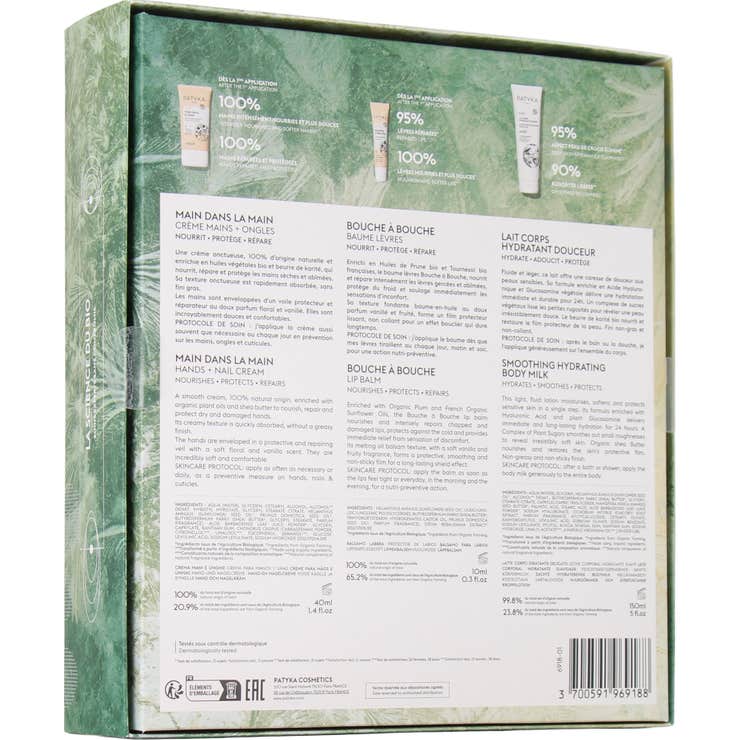 Patyka Pack Cofre Rituel Nutri Douceur reúne os tratamentos essenciais da linha Nutri-Douceur da Patyka para o cuidado corporal de peles secas, sensíveis e muito sensíveis. Oferece uma hidratação profunda voltada para nutrir, reparar e acalmar a pele, com texturas cremosas e bálsamos fundentes para um ritual de conforto.