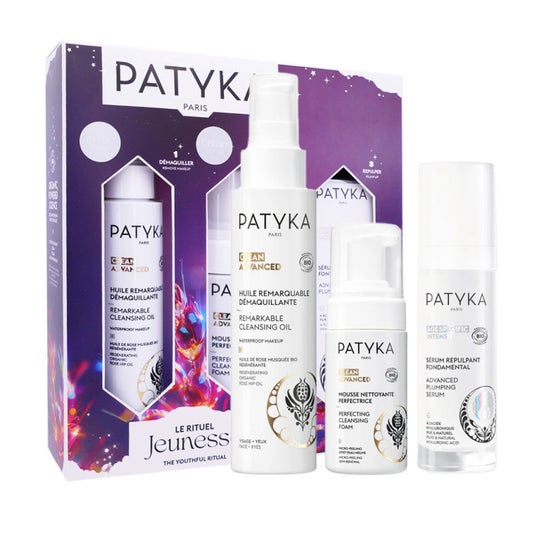 Patyka Youthful Ritual é um conjunto que inclui três produtos essenciais para o cuidado da pele, projetado para proporcionar uma aparência visivelmente mais jovem. Este cofre contém: