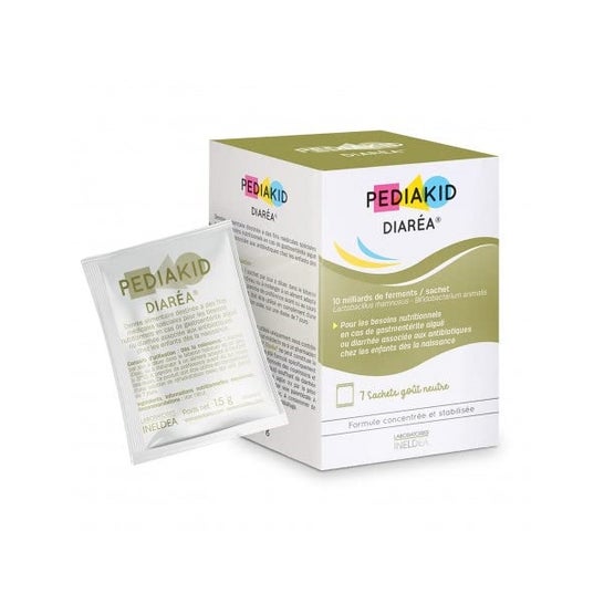O Pediakid Diarreia consiste em saquetas solúveis em água ou noutra bebida. São especialmente indicadas para diarreias infantis, quer sejam causadas por um vírus ou por outras causas como bactérias, antibióticos, dentição, etc. O Pediakid atua evitando a desidratação. É o primeiro passo a dar para evitar as diarreias infantis. Contém também uma fórmula com duas estirpes de fermentos lácticos selecionados especialmente para as necessidades nutricionais de crianças pequenas e lactentes. Estes fermentos ajudam a restabelecer a flora bacteriana do intestino. Isto é necessário uma vez que as diarreias e os antibióticos alteram esta microbiota intestinal. Uma saqueta fornece 10 mil milhões de fermentos lácticos associados a fibras prebióticas de acácia. As bactérias saudáveis substituem as causadoras da diarreia e assim consegue-se que esta vá desaparecendo gradualmente.