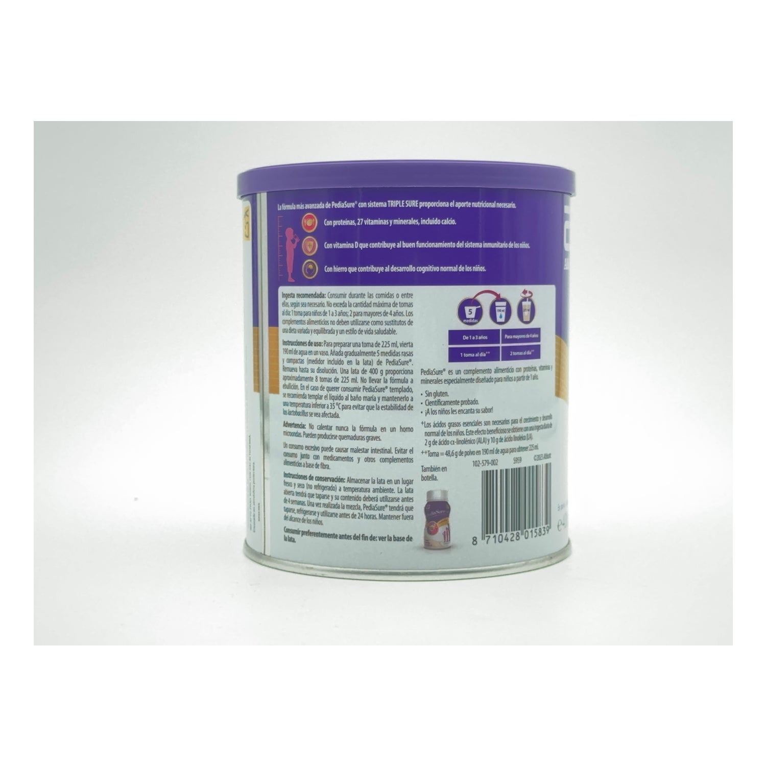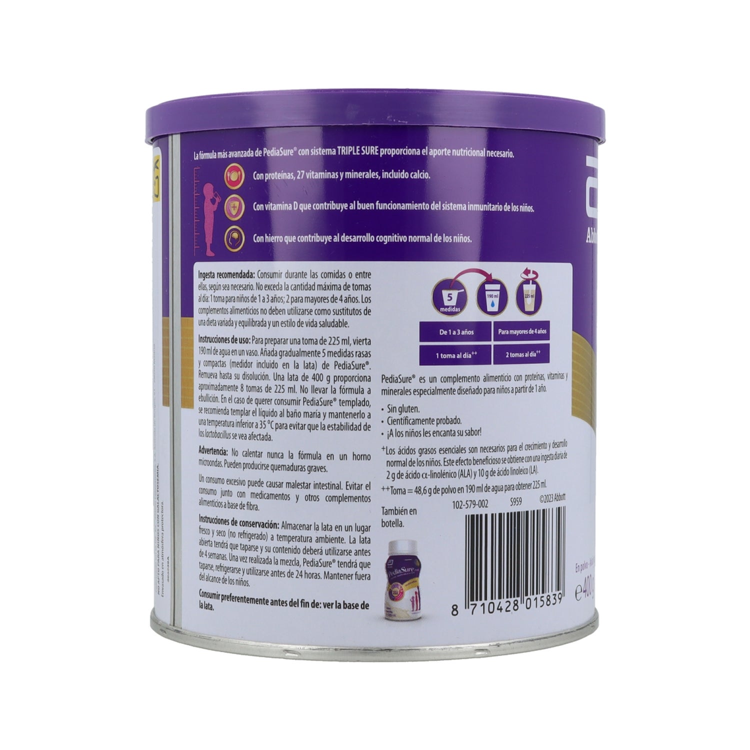Abbott Pediasure Vanilla 400g é um suplemento alimentar em pó concebido para apoiar a nutrição de crianças a partir de 1 ano de idade. É formulado com um sistema chamado Triplesure, que apoia um crescimento forte e saudável em bebés até aos 10 anos de idade.
