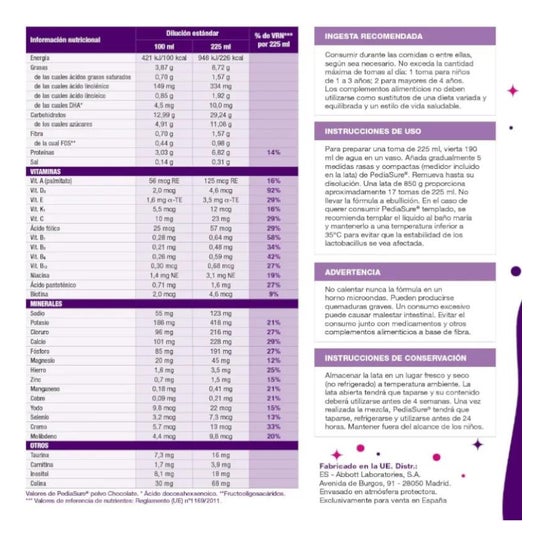 Suplemento alimentar contendo nutrientes dos 5 grupos alimentares tais como 13 vitaminas e 14 minerais incluindo ferro, cálcio e vitamina D, que contribuem para o bom funcionamento do sistema imunitário. Os ácidos gordos essenciais promovem o crescimento nas crianças e o cálcio e as proteínas promovem o desenvolvimento ósseo.