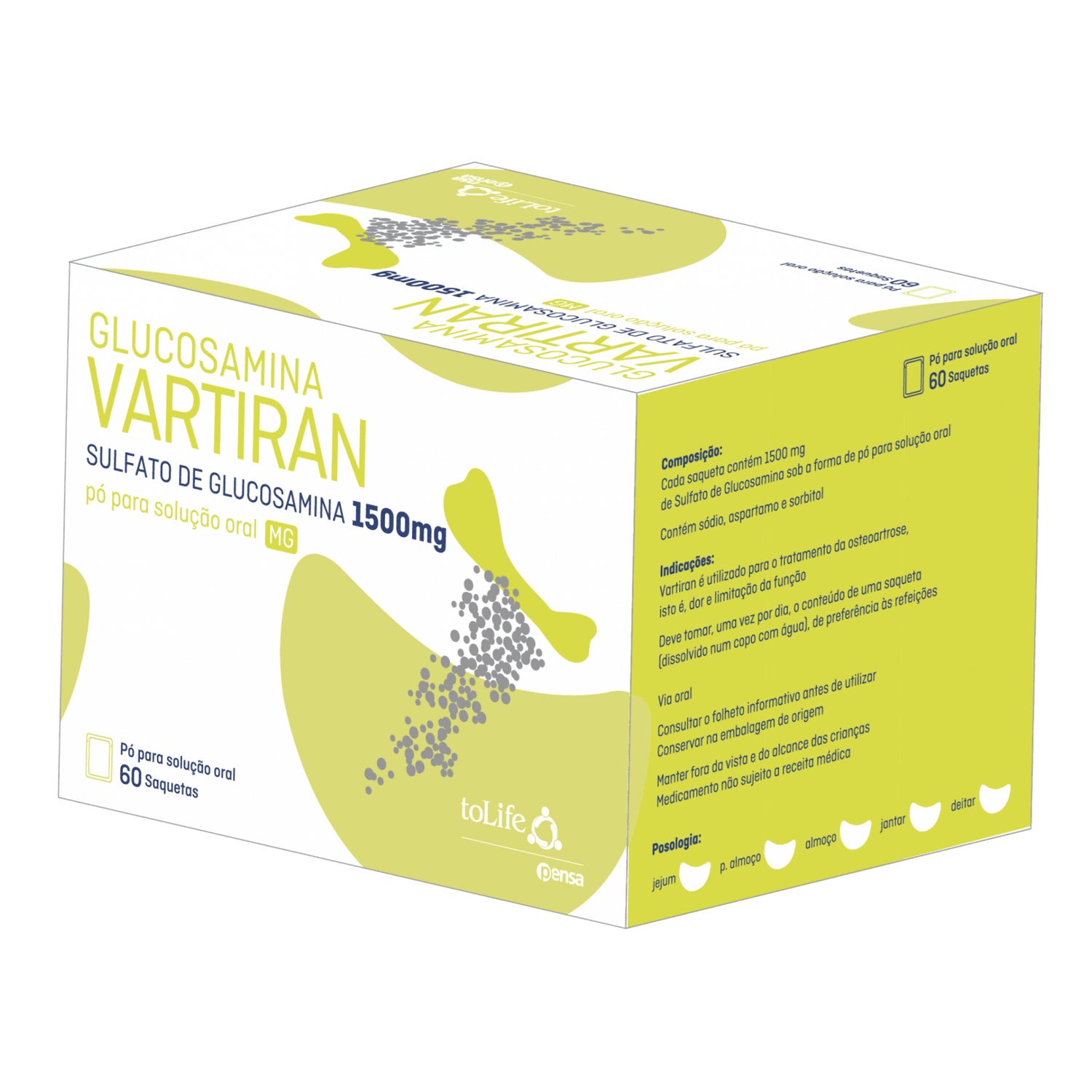 A artrose é caracterizada por um processo degenerativo da cartilagem articular, em que esta vai sendo progressivamente destruída. Glucosamina Vartiran, contém como substância ativa sulfato de glucosamina um constituinte da cartilagem que é necessário para a sua regeneração e que pode estimular as células formadoras de cartilagem contribuindo para atrasar ou até parar o processo degenerativo.