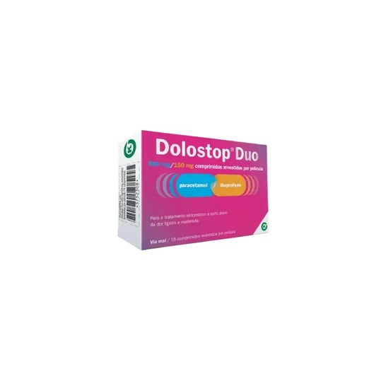 Dolostop Duo 500 mg/150 mg comprimidos revestidos por película contém paracetamol e ibuprofeno. O paracetamol atua impedindo que as mensagens de dor cheguem até ao cérebro. O ibuprofeno pertence a um grupo de medicamentos designados anti-inflamatórios não esteroides (ou AINE). Alivia a dor e reduz a inflamação (inchaço, vermelhidão ou sensibilidade dolorosa).