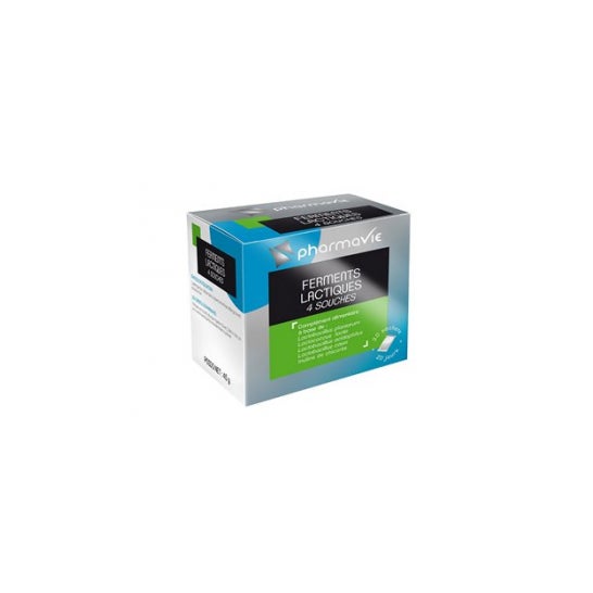 Pharmavie Ferments Lactiques 4 Souches 20 Sachets é um suplemento alimentar que contém Lactobacillus plantarum, Lactococcus lactis, Lactobacillus acidophilus, Lactobacillus casei e inulina de chicória para ajudar a manter uma flora intestinal equilibrada, melhorar o trânsito e restaurar a microbiota após antibióticos.