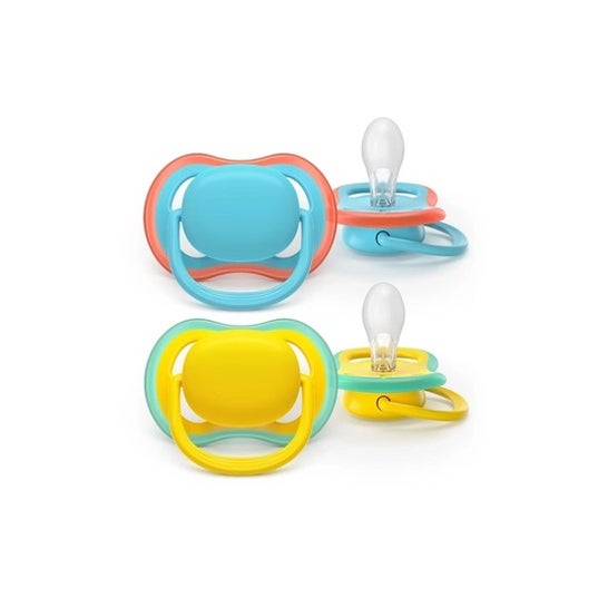 Philips Avent Ultra Air Deco 18M+ Amarelo Azul 2uds é uma chupeta projetada especificamente para bebês de 6 a 18 meses. Este produto se caracteriza pelo seu conforto, pois minimiza as marcas e a irritação na pele do seu bebê.