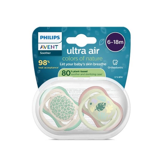 Philips Avent Ultra Air Deco 6-18M Bege 2uds é uma chupeta projetada especialmente para bebês de 6 a 18 meses, focando em proporcionar o máximo conforto durante a fase de dentição. Seu design inovador, fabricado com materiais sustentáveis, destaca-se pelo compromisso com o meio ambiente, contribuindo para uma menor pegada ecológica.