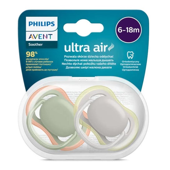 Philips Avent Ultra Air Soother 6-18 Meses Neutro 2 peças. *A cor ou o design pode variar dependendo da disponibilidade.