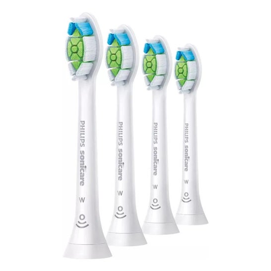 Pacote de 4 recargas Optimal White adequado para todas as escovas de dentes eléctricas Philips. A sua forma ajuda a remover manchas de superfície do esmalte que são frequentemente causadas por beber café ou vinho e fumar. Remove mais placa bacteriana do que as escovas de dentes manuais.