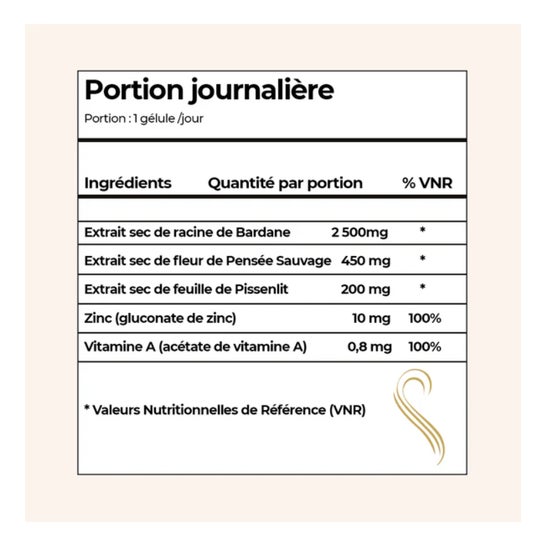 Estas plantas são reconhecidas por seus benefícios sobre o equilíbrio e a clareza da pele. Enriquecida em zinco, que contribui para a manutenção de uma pele saudável, oferece um apoio nutricional completo para favorecer uma pele limpa e equilibrada.