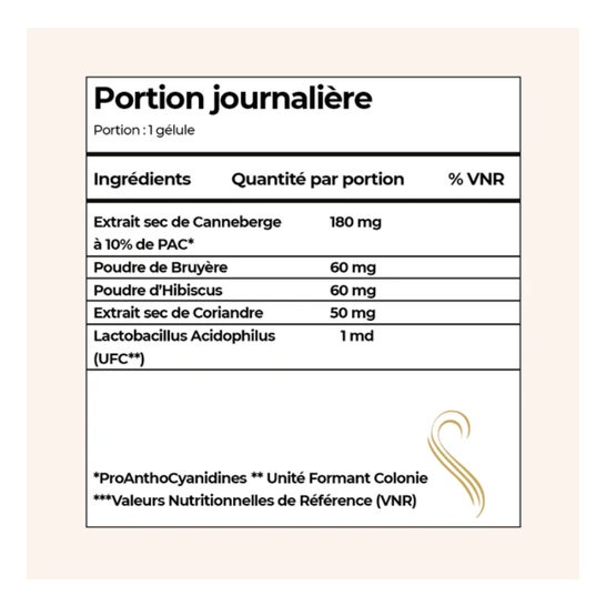 Esta fórmula combina três plantas tradicionais — mirtilo, urze e hibisco — reconhecidas por seus benefícios sobre o bem-estar urinário. Enriquecida com fermentos lácticos (Lactobacillus acidophilus), oferece uma ação completa que une fitoterapia e probióticos.
