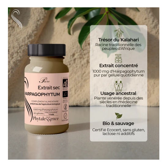 Phytalessence Extrato Seco de Harpagofita Bio 60caps é um complemento alimentar à base de extrato seco de harpagofita, que ajuda a manter a saúde das articulações e uma boa mobilidade.
