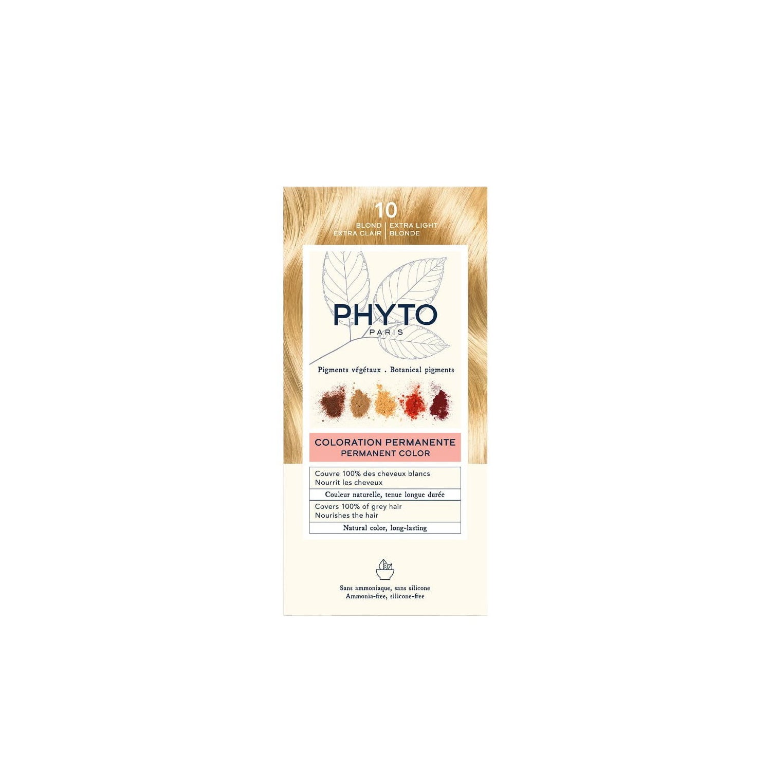 Phyto Phytocolor 10 Louro Extra Claro 100ml é uma coloração permanente sem amônia que utiliza pigmentos vegetais para alcançar uma cor intensa e natural. Sua fórmula inclui: