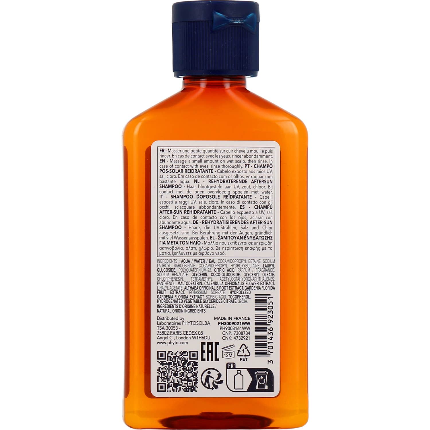 Phyto Plage Champô After-Sun Rehidratante não contém silicone, tensoativos sulfatados nem corantes, o que o torna uma opção respeitosa com a saúde capilar. Recomenda-se aplicar uma pequena quantidade sobre o couro cabeludo úmido, massagear suavemente e enxaguar abundantemente para obter os melhores resultados.