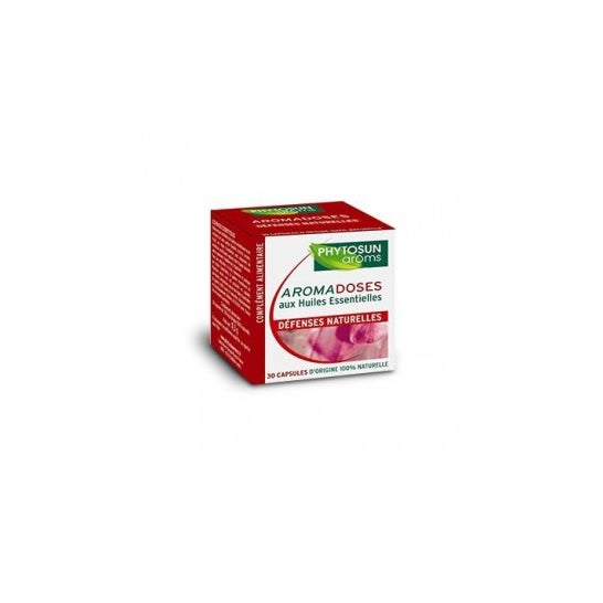 Phytosun Aromadoses Défenses Naturelles 30 cápsulas contém um complexo de óleos essenciais que contribuem para reforçar as defesas do organismo, nomeadamente durante o inverno. O suplemento alimentar Phytosun Aromadoses Défenses Naturelles contém 4 óleos essenciais. São eles o Tea Tree, o Ravintsara, o Savory Leaf Thyme e o Niaouli, que ajudam a reforçar as defesas naturais do organismo e a combater as numerosas infecções que podem ocorrer durante o inverno. INFORMAÇÃOOs Aromadoses Défenses Naturelles dos laboratórios Phytosun Arôms estimulam eficazmente as defesas naturais do organismo durante os períodos de mal-estar invernal. INDICAÇÕES