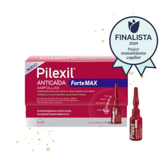 Frena a queda progressiva do cabelo com a fórmula inovadora multifatorial de Pilexil Forte Max Ampolas Anticaída. • Tratamento de uso tópico • Recomendado para homens e mulheres • Frena a queda severa do cabelo e reforça a ancoragem do folículo • Normaliza o crescimento capilar e melhora a oferta de nutrientes