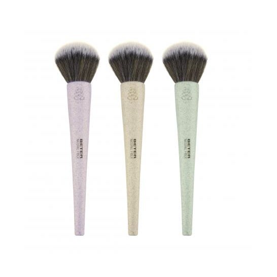 Beter Pincel de Maquiagem em Pó Fibra Natural 1ud é um pincel de maquiagem elaborado com material natural à base de fibra de trigo, 100% biodegradável. Contribui para aplicar e espalhar a base de maquiagem em pó de forma precisa.