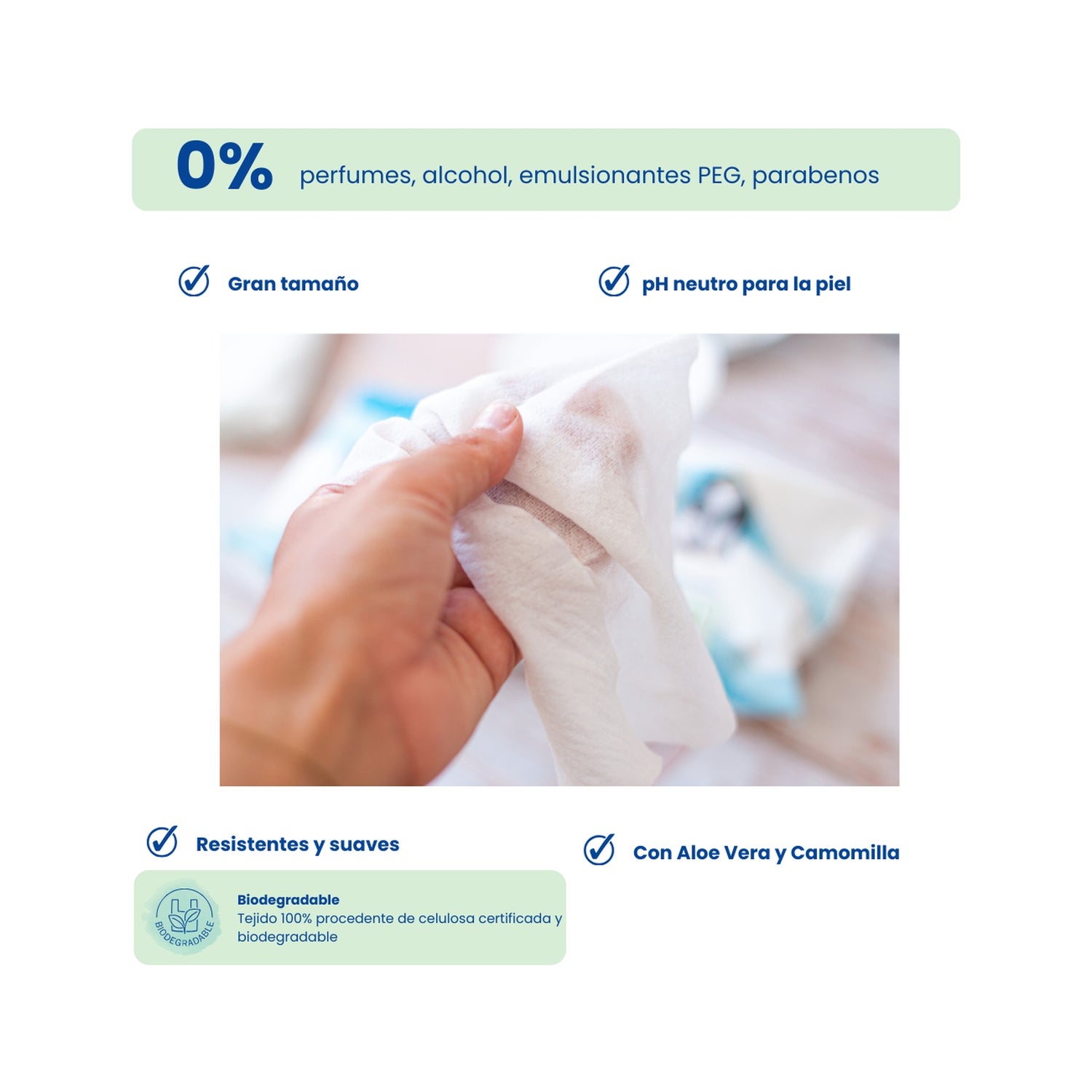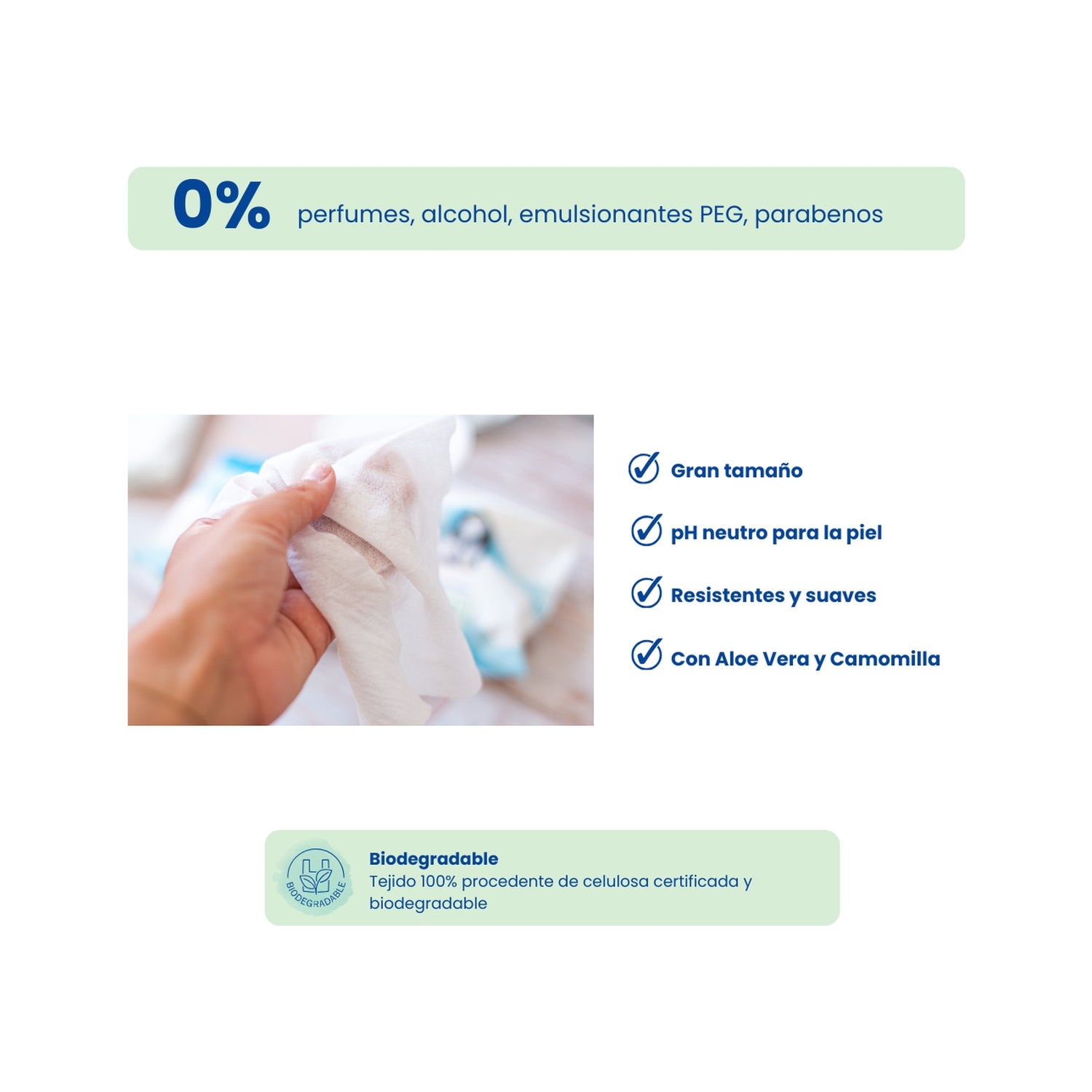 Estes toalhetes são adequados para a limpeza e os cuidados dos bebés, bem como dos adultos com pele sensível. São ideais para utilização na pele e para pequenos acidentes domésticos que exijam uma resposta higiénica rápida e eficaz.