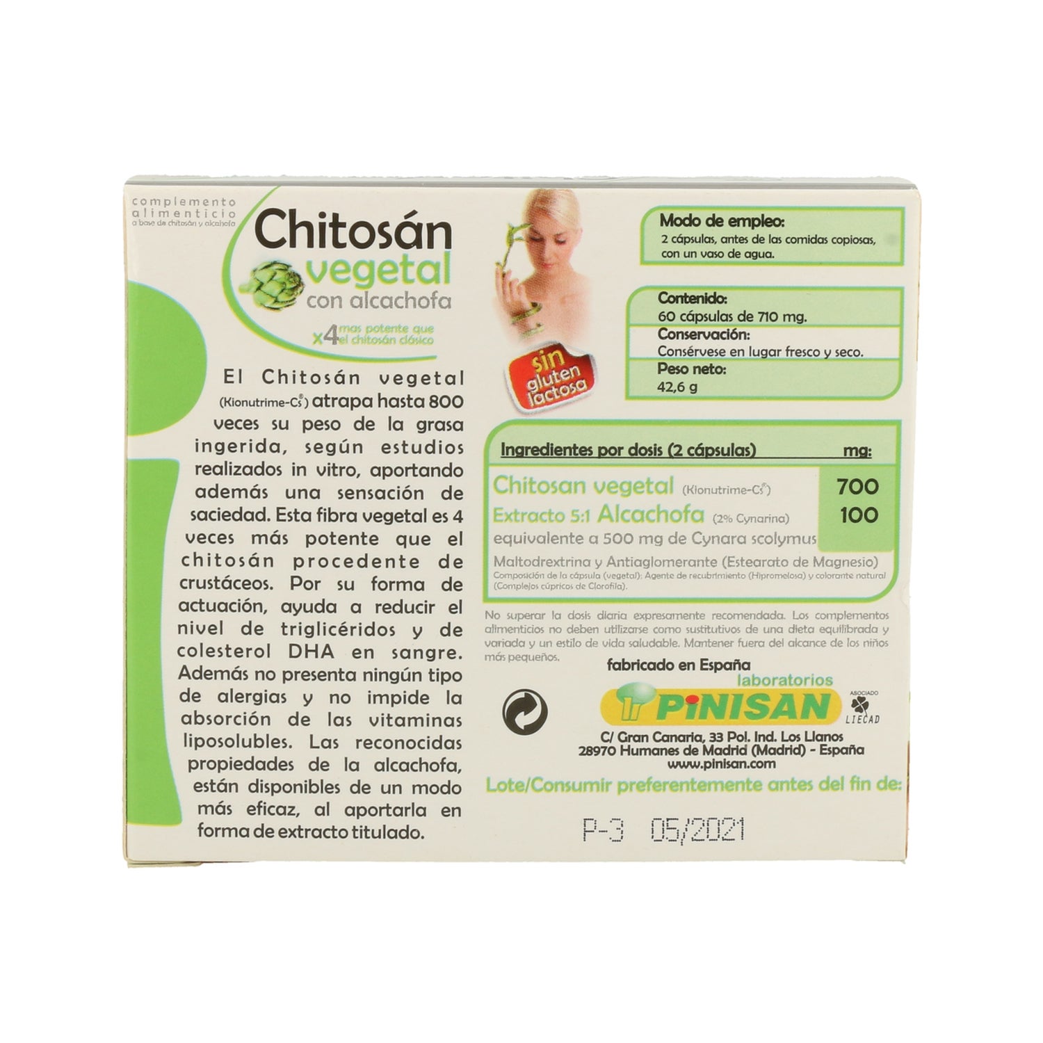 Elaborado à base de Chitosan vegetal (Kionutrime-Cs). A alcachofra, depurativa e diurética, é uma fibra vegetal: