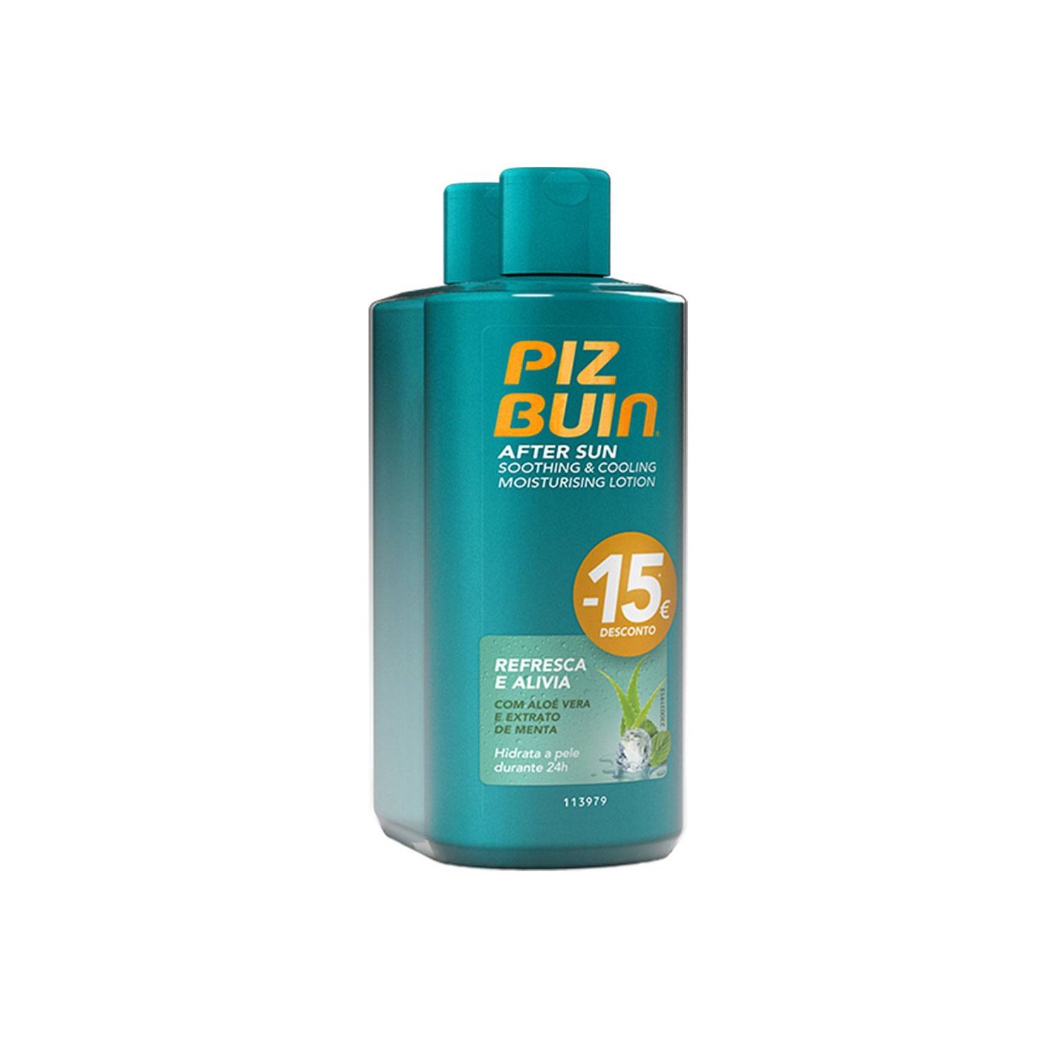 Piz Buin After Sun Loção Suavizante e Refrescante é um produto projetado para proporcionar um alívio imediato e duradouro à pele após a exposição solar. Apresentado em um formato de duas embalagens de 200 ml, esta loção contém Aloe Vera e extrato de menta, o que contribui para seu efeito refrescante.