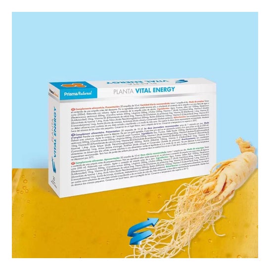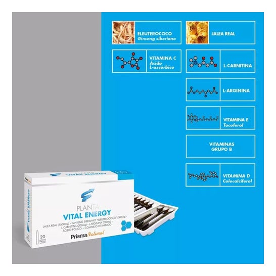 Plantavital Energy 20 Amp 10Ml Prisma Natural é um suplemento alimentar da Prisma Natural que combina geleia real, eleutherococcus, aminoácidos e vitaminas. É formulado para combater a fadiga e o stress, bem como para promover o bem-estar físico e mental geral. Este produto ajuda a aumentar a vitalidade e a energia, fornecendo nutrientes essenciais para o organismo. Ajuda também a melhorar a digestão e a reduzir a inflamação abdominal. É especialmente recomendado para aqueles que desejam melhorar a sua saúde e manter um estilo de vida ativo e saudável.